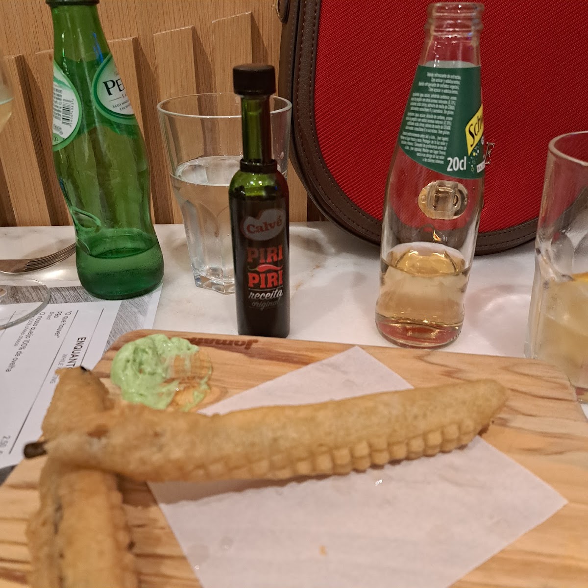 We were pleasantly surprised by the quality of the food and its memorable taste when we came across this little gem by surprise. Very friendly and efficient service, available in English and Portuguese. Their beer tap was apparently broken though, but they still had bottled beers. We started with the shrimp in the beer sauce and were blown away by how delicious it was. Order with bread! The beef sandwich and the raw cod were ok, but the other stuff we had including the octopus, duck croquettes, and squid tacos were very tasty. Located very close to the very, tram, bus station. Vegetarian options available. Kid friendly. Handicap accessible.