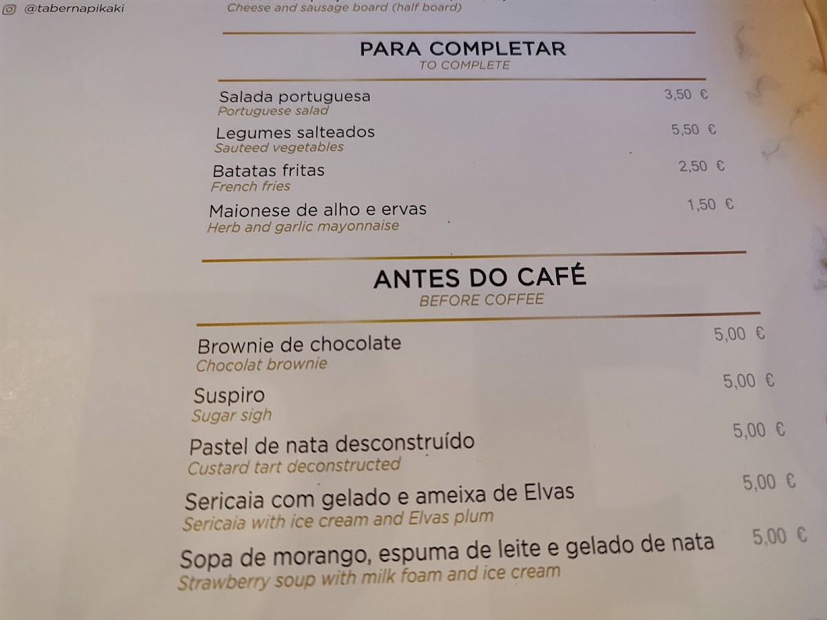 This range of dishes pairs naturally with the laid-back atmosphere of the taberna, encouraging shared moments over food that feels both authentic and approachable. The presence of traditional treats—like a deconstructed pastel de nata or a Portuguese-style gazpacho—adds a subtle touch of familiar warmth to round out the experience.